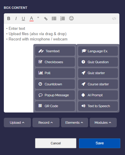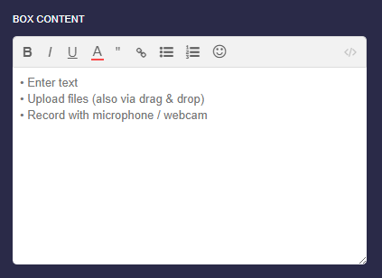 If you want to generate a QR code, you can use the dropdown in the box editor and select “QR Code”.