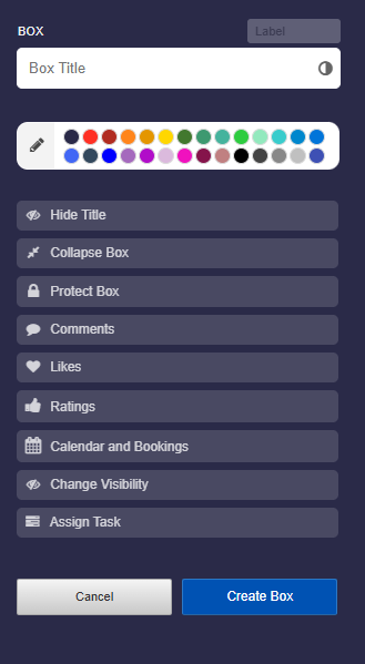 - For a pinboard or timeline, you have to first create a column before the “Add Box” button appears.