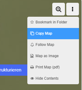 Any public map can be copied by you. Simply click on “Copy map” in the top right menu: