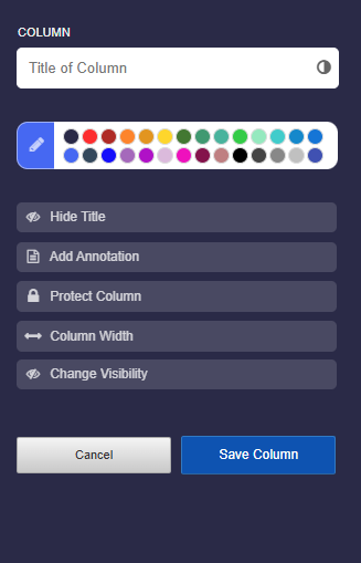 - In the column settings, give the column a title. Feel free to set various options.