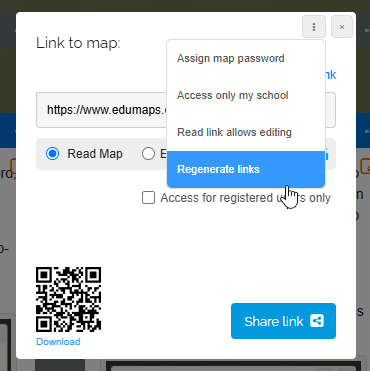 • You can share your map via a link, initially granting your students editing rights, and later downgrade the link to read-only access.