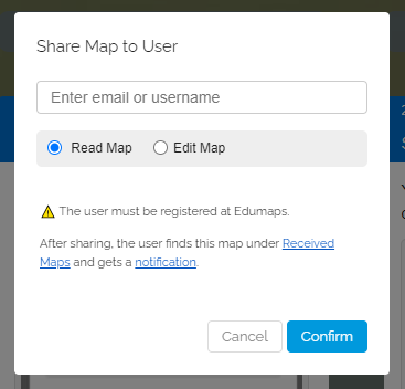 • Additionally, they will receive a notification on Edumaps, which will also link to the shared map.