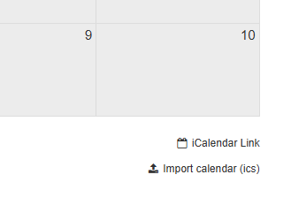 • As the map owner, you will find the “Import calendar (ics)” button on the right below the calendar. By clicking the button, you can upload an ics file. All events will then be imported automatically.
