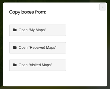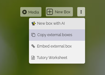 To copy boxes from other maps, click on the three dots to the right of the “New Box” button. A dropdown menu will open. Select “Copy external boxes” there.