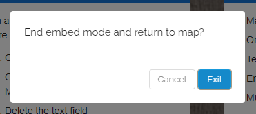 If you want to exit embed mode, you can click on the red banner "Embed Mode" at the top left. This will end the embed mode and you will return to your map.