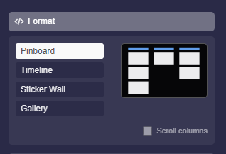 The pinboard consists of tracks. Each track contains boxes. Multiple tracks are positioned side by side.