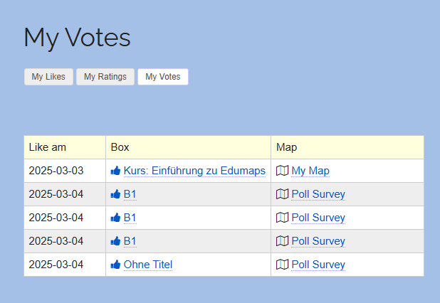 - On the page “My Votes”, every user can see which polls they participated in and how they voted.