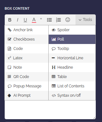 To do this, open the box editor, click on the dropdown, and select “Poll”.