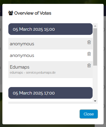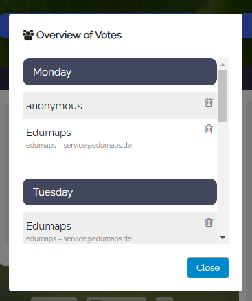 As the map owner, you can view all votes by clicking on one of the voting counters: