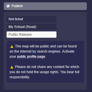 ⚠️ The map will be public and can be found on the internet by search engines. Activate your public profile page.