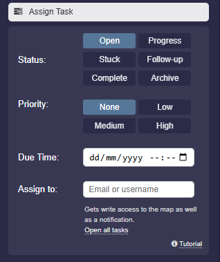 If a task has been assigned to another user, this user should set the status to “Done” after completion. This will create a notification for the map owner.