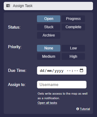 A task can be assigned to a specific user. Enter the username of the recipient.