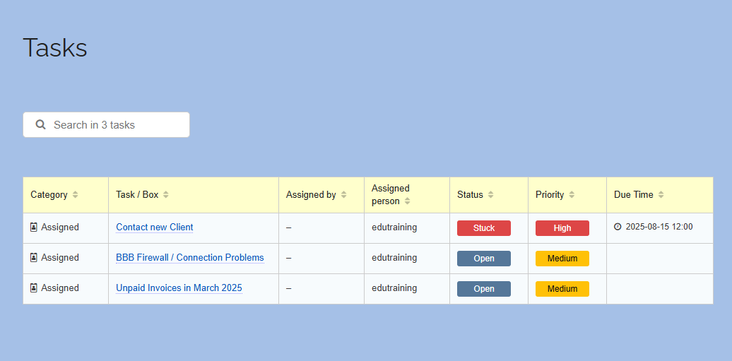 This way, you always have a full overview and can easily search or filter for specific tasks.