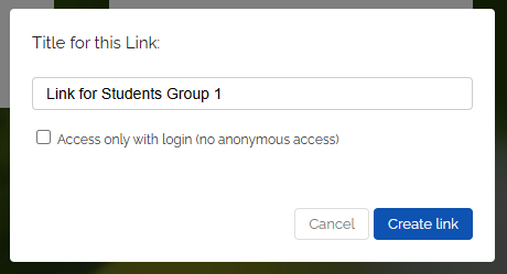 Click “Create link”. You can now copy the generated link and distribute it to your students.