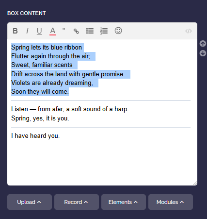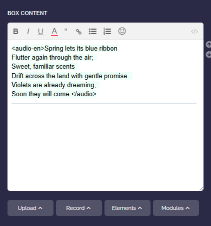 After that, save the box and you can have the text read aloud. Click on the text or the play icon to start.