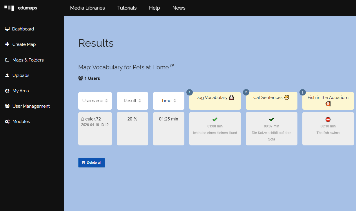 If you would like to fundamentally change a language course that already has results, please copy the map and edit the copy. Then distribute the new map/language course again.