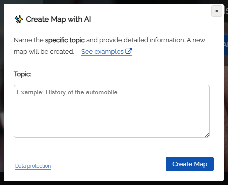 The dialog “Create map with AI” will open.