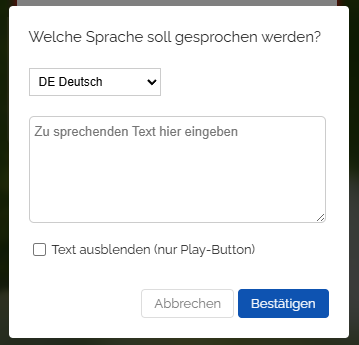 Öffnen Sie hierzu die passende Box und markieren Sie mit der Maus den Text, der gesprochen werden soll.