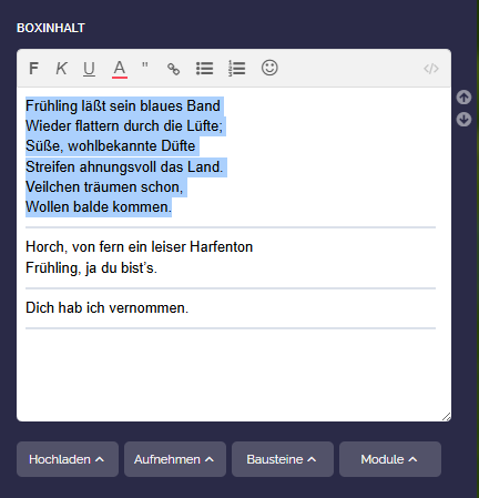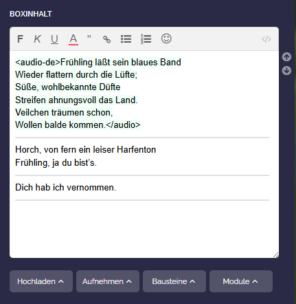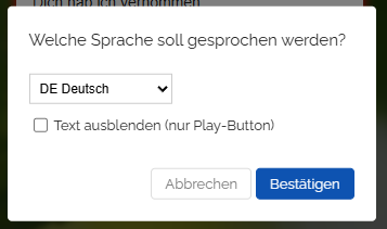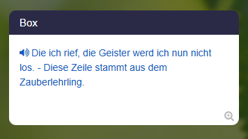 Anschließend speichern Sie die Box und können sich nun den Text vorlesen lassen. Klicken Sie hierzu auf den Text oder das Abspielsymbol.