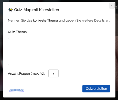 Der Dialog „Quiz-Map mit KI erstellen“ öffnet sich.