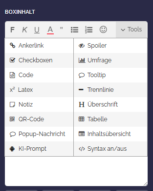 ✔️ Hier erfahren Sie wie die Eingaben im Box-Editor funktionieren:
