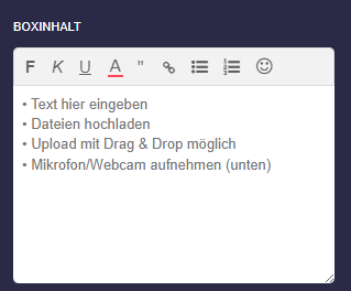 ✔️ Hier erfahren Sie wie die Eingaben im Box-Editor funktionieren: