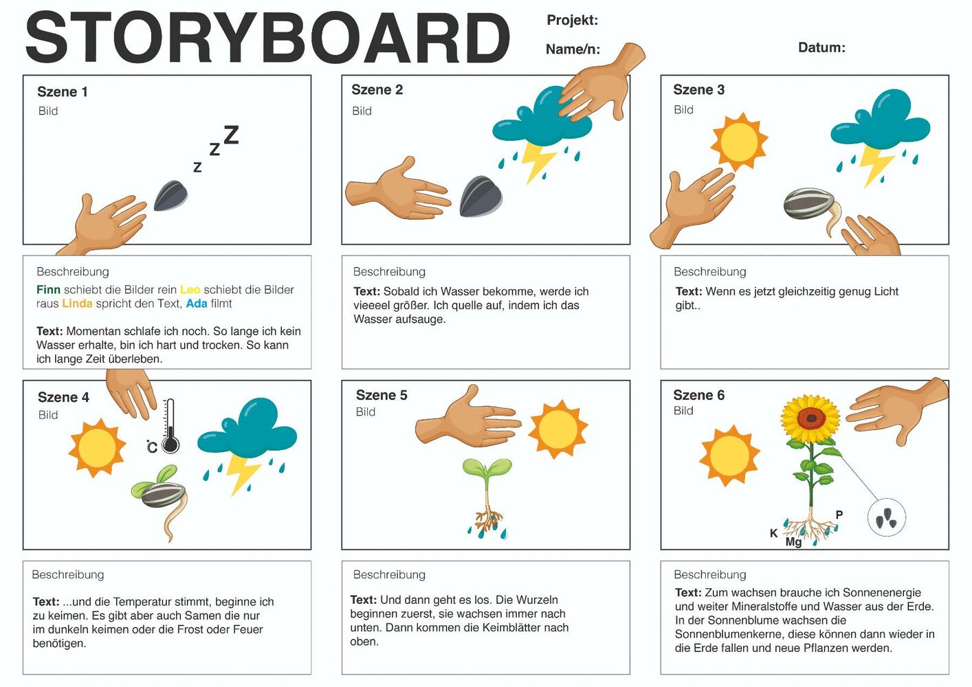 Lernende sind in der Lage auf Basis von einzelnen Bildern einen eigenen Zusammenhang bzw. Ablauf zu visualisieren.