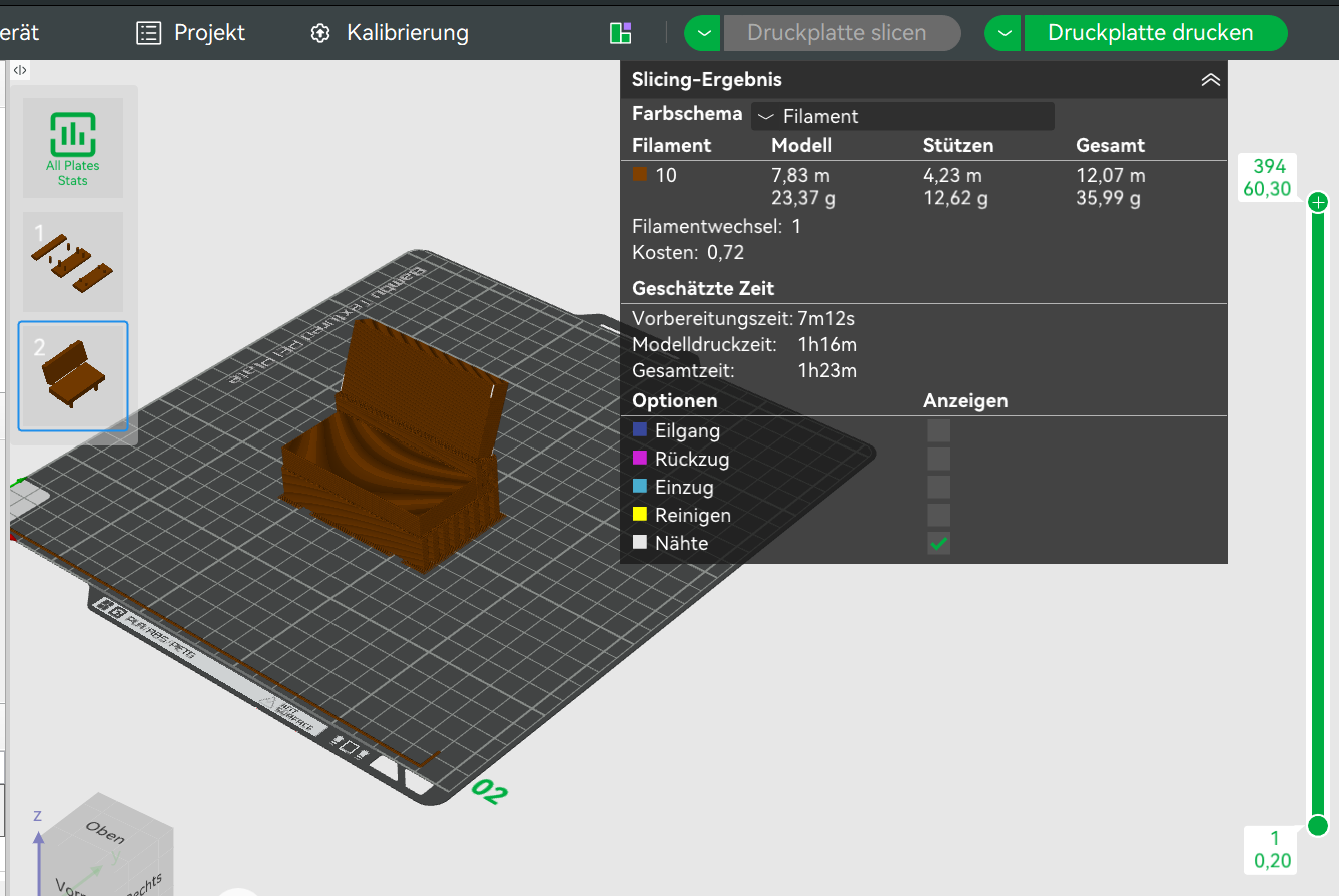 Wir verwenden die Freeware "Orca-Slicer", die mit verschiedenen Druckertypen kompatibel ist.