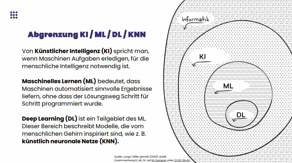 - Erarbeite aus dem Tab "Begriffe" die Definitionen von KI und maschinellem Lernen.