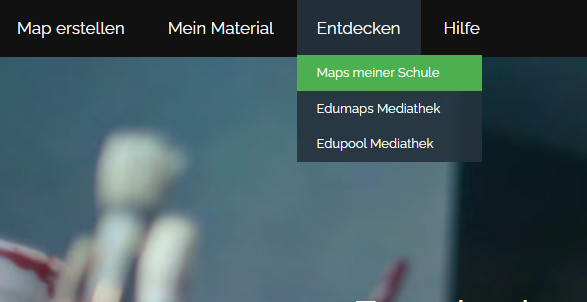 Über das Hauptmenü finden Sie die Edumaps Mediathek und falls freigegeben die Edupool Mediathek.