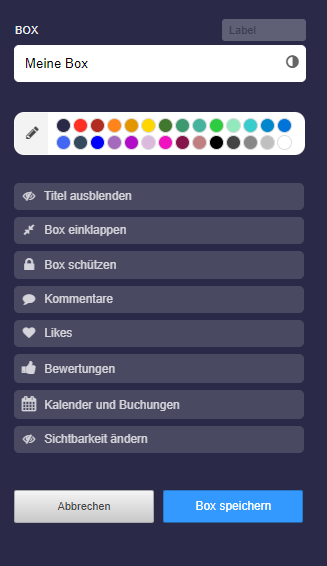 Der Box-Einstellungen enthalten folgende Optionen: