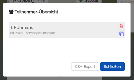 Sie können die gesamte Teilnehmerliste mit einem Klick auf den Button „CSV-Export“ exportieren.
