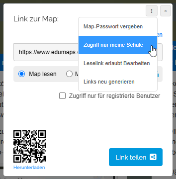 Hierzu können Sie im Map-Teilen-Dialog die drei Punkte klicken und im Dropdown „Zugriff nur meine Schule“ wählen.