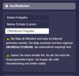 Öffnen Sie hierzu die Map-Einstellungen und wählen unter „Veröffentlichen“ die Option „Meine Schule (Lesen)“.