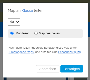 - Nach dem Teilen finden die Schüler die Map in ihrem persönlichen Bereich unter Empfangene Maps wieder.