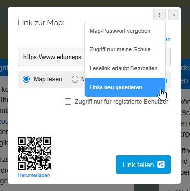 Wenn Sie die Map-Links neu generieren, dann werden bestehende Map-Links ungültig und alle Nutzer, die diese Links bereits verwenden, verlieren Zugriff auf die Map.