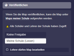 Öffnen Sie hierzu die Map-Einstellungen und wählen unter „Veröffentlichen“ die Option „Meine Schule (Lesen)“.