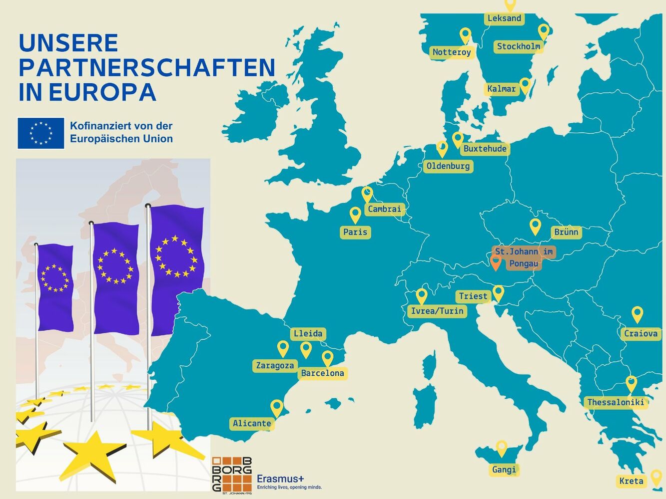 Since 2023 we have been working with many European partnerschools. We have welcomed student groups and teachers for jobshadowing at St. Johann. Would you like to come and do a project with us as well? Please contact us at erasmus@gym-stjohann.at