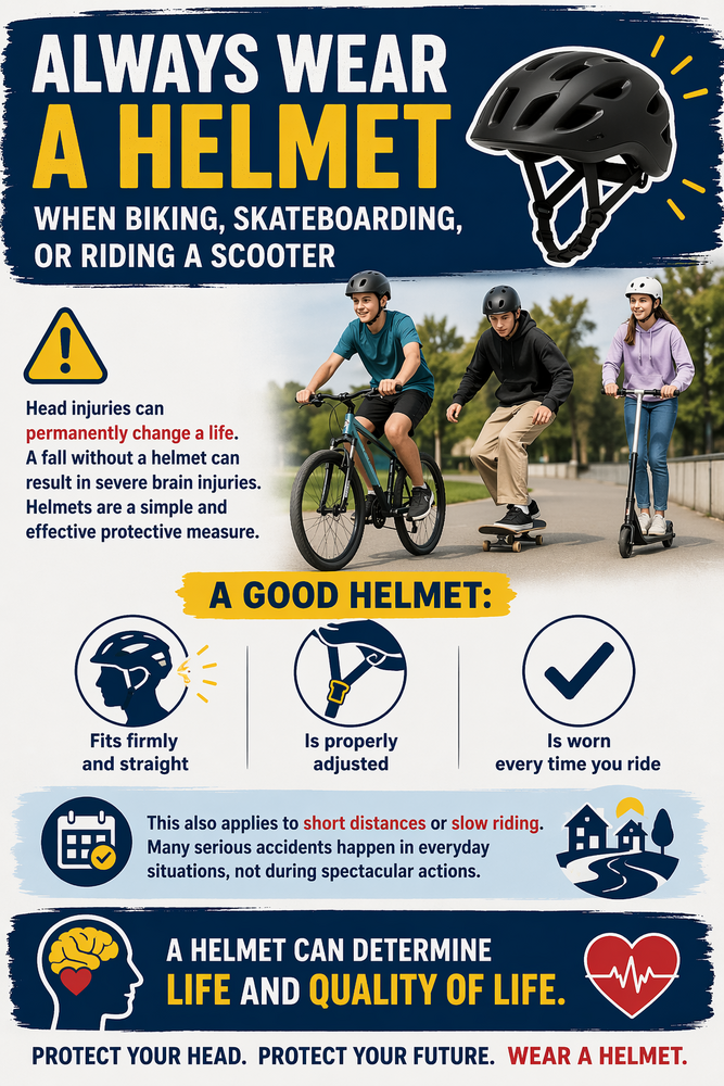 🚴 Always wear a helmet when biking, skateboarding, or riding a scooter
