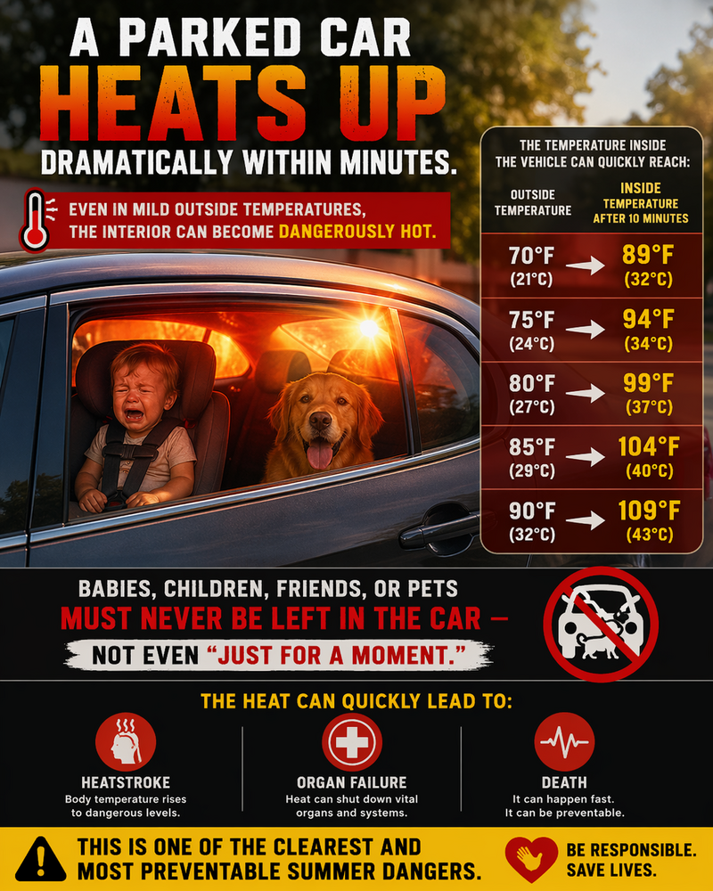 The temperature inside the vehicle can quickly reach levels that lead to:
