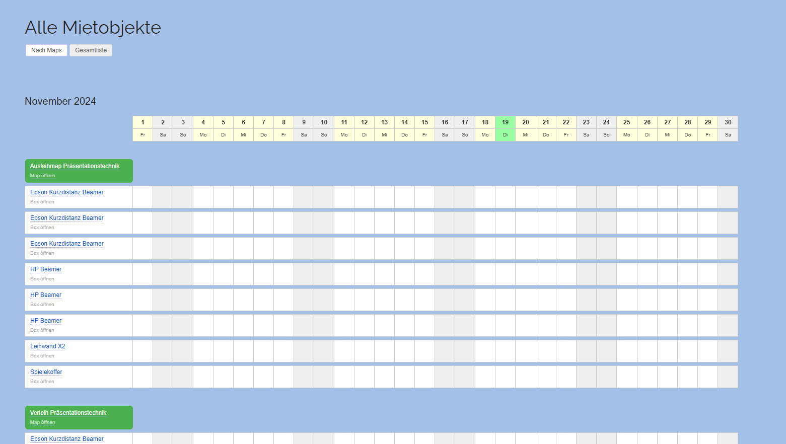 So kann jeder Benutzer auf einen Blick sehen, welche Geräte an welchen Tagen verfügbar sind.