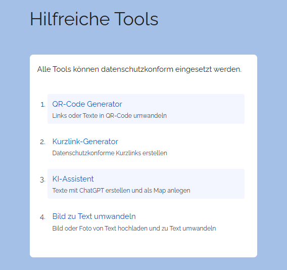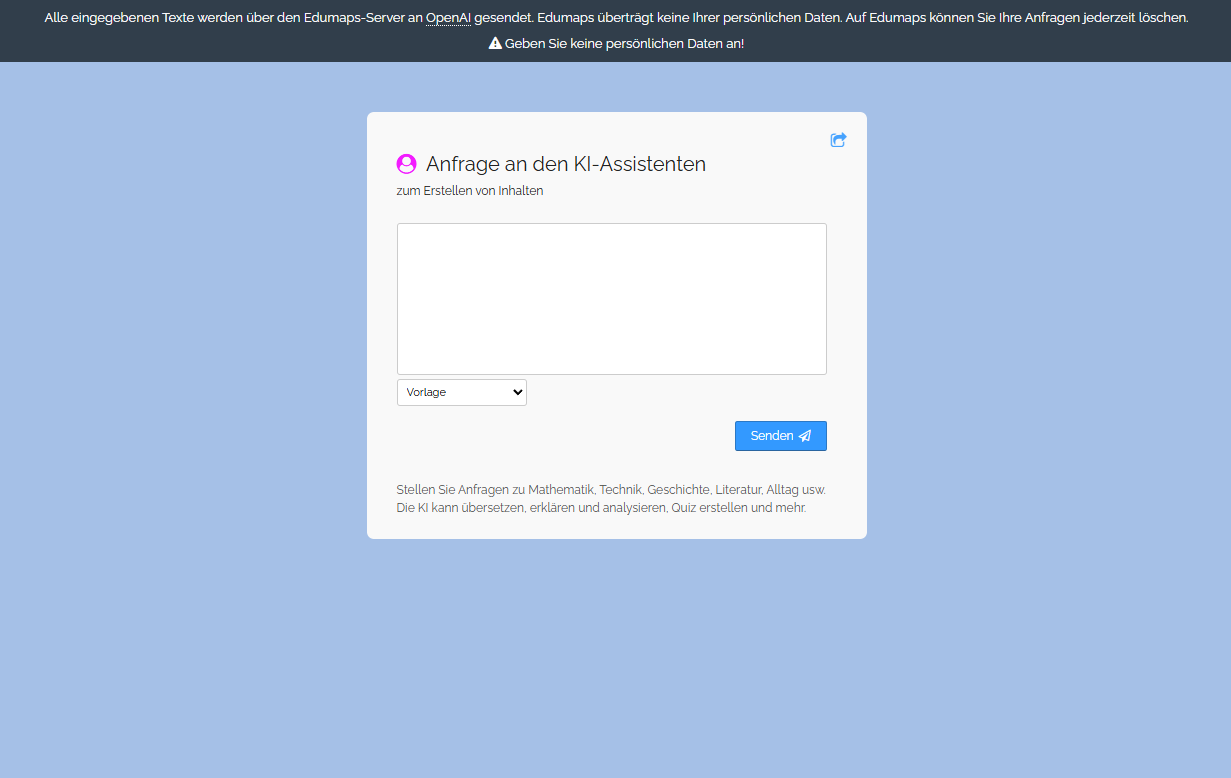 - Sie können den KI-Assistenten auch direkt aufrufen über: https://www.edumaps.de/ai