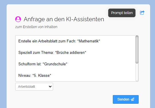 Sobald Sie einen Prompt (eine Anfrage) eingegeben haben, können Sie diese direkt teilen.