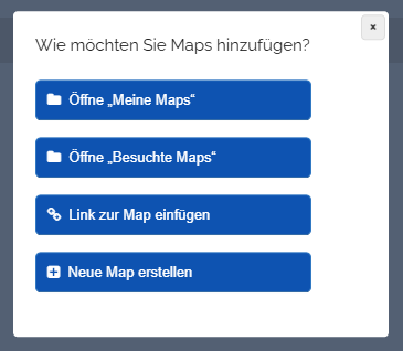 - Wählen Sie für das Map-Hinzufügen „Meine Maps“ oder „Besuchte Maps“, so werden Sie zur entsprechenden Seite weitergeleitet.