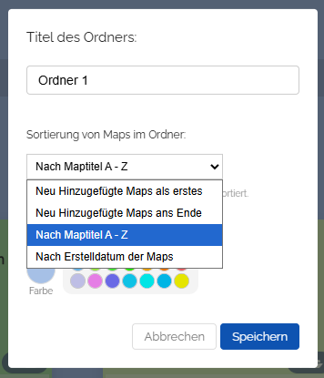 Sie haben die Möglichkeit, die Sortierung der Maps im Ordner zu verändern.