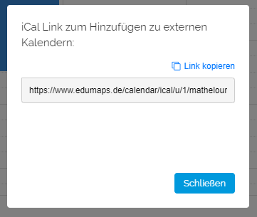 Klicken Sie darauf, so wird Ihnen der iCalendar-Link angezeigt.