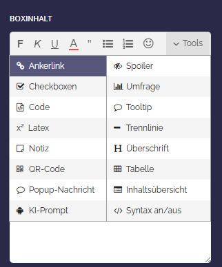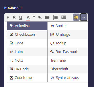 - Öffnen Sie den Box-Editor für die Box, wo verlinkt werden soll.