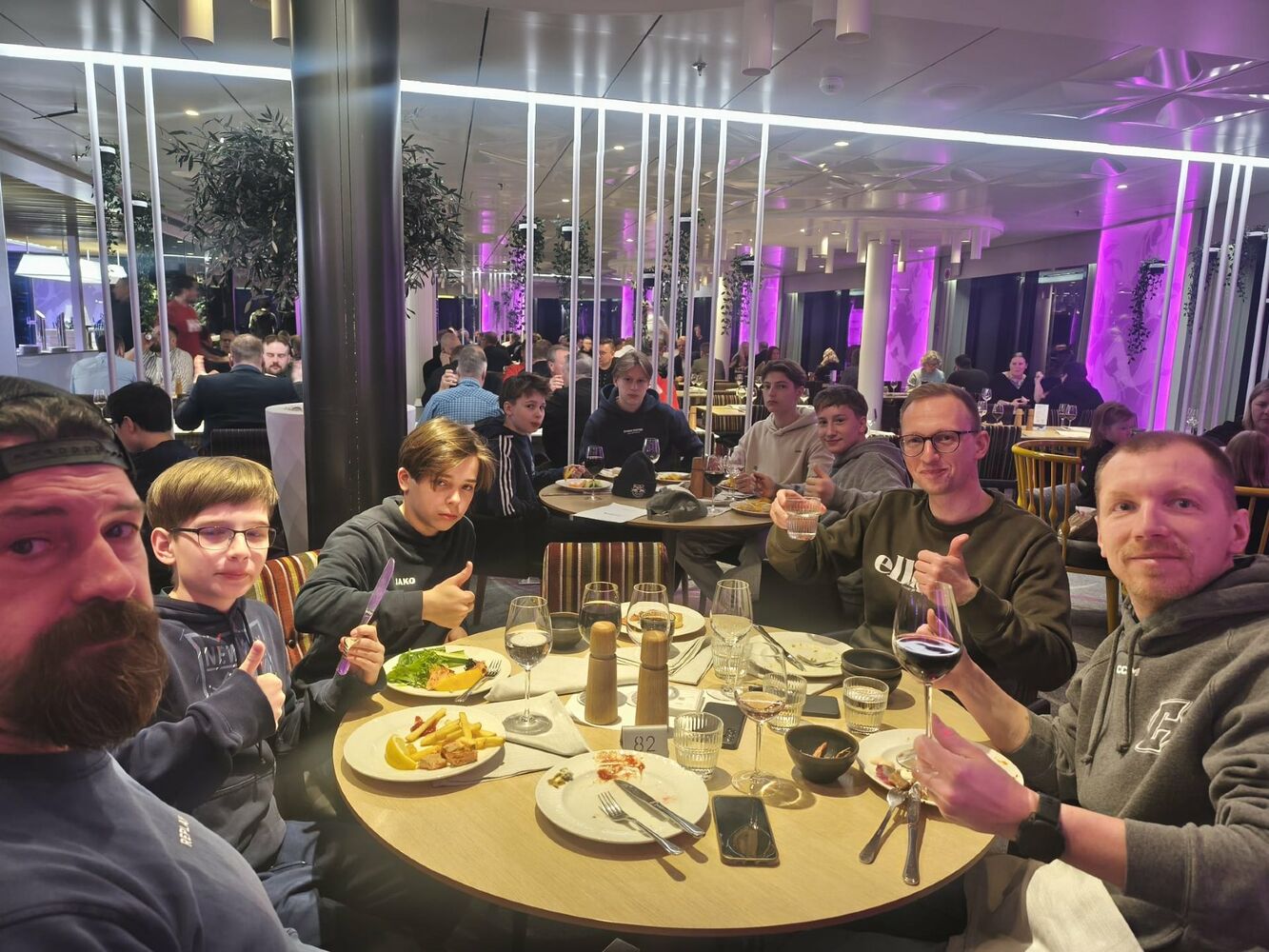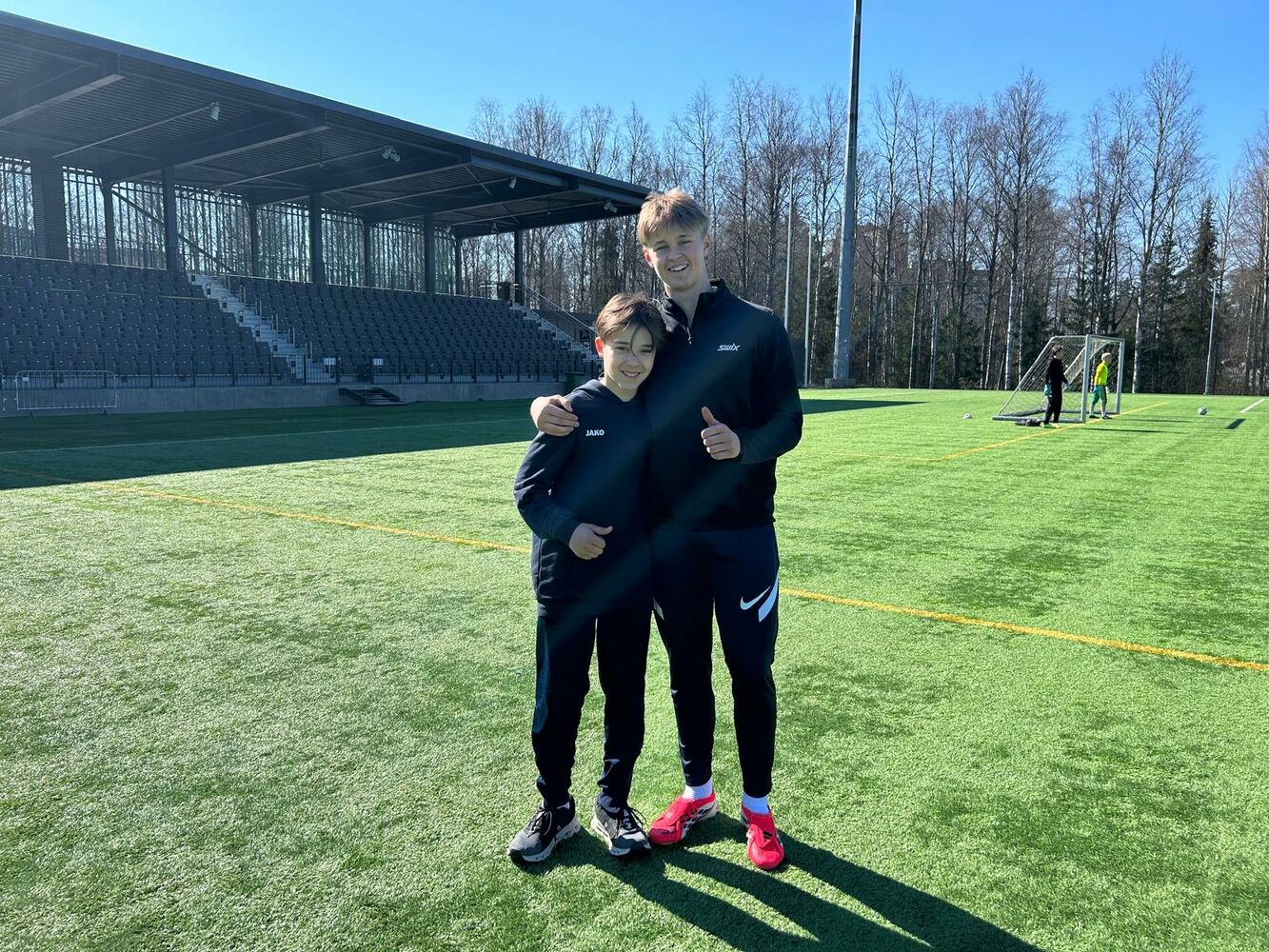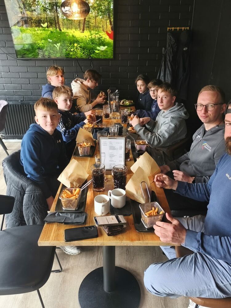 Wir starteten den Tag mit einem ausgiebigen Frühstück, bei dem es Rührei und Bacon gab. Gut gestärkt ging es anschließend zum Ilves-Platz, wo wir gemeinsam mit den Spielern der 9. Klassen auf dem Platz aktiv waren. Das gemeinsame Spiel machte viel Spaß und sorgte für eine sportliche und abwechslungsreiche Atmosphäre.