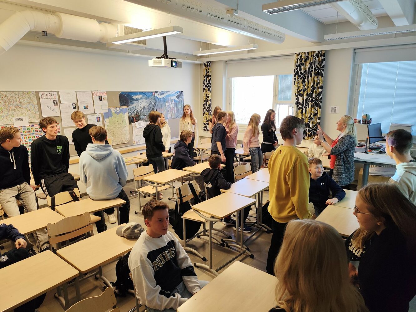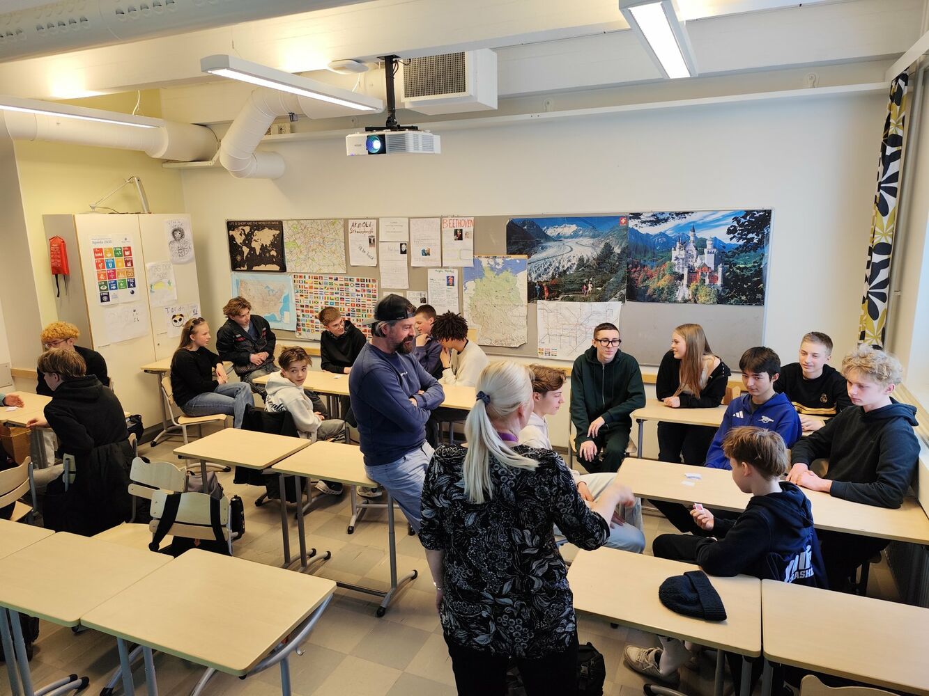 Im Deutschunterricht haben wir mit unseren finnischen Mitschülern Kahoot gespielt, natürlich auf deutsch, so war es für die Finnen Unterricht und für uns ein "Heimspiel" 😀