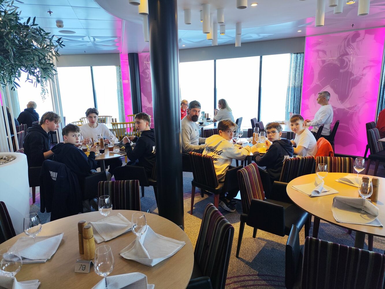 Nach dem ersten Drittel mussten wir bereits zum Hafen, um auf die Fähre zu gelangen. Nachdem wir uns eingerichtet hatten, gingen wir ausgiebig zum Abend essen.